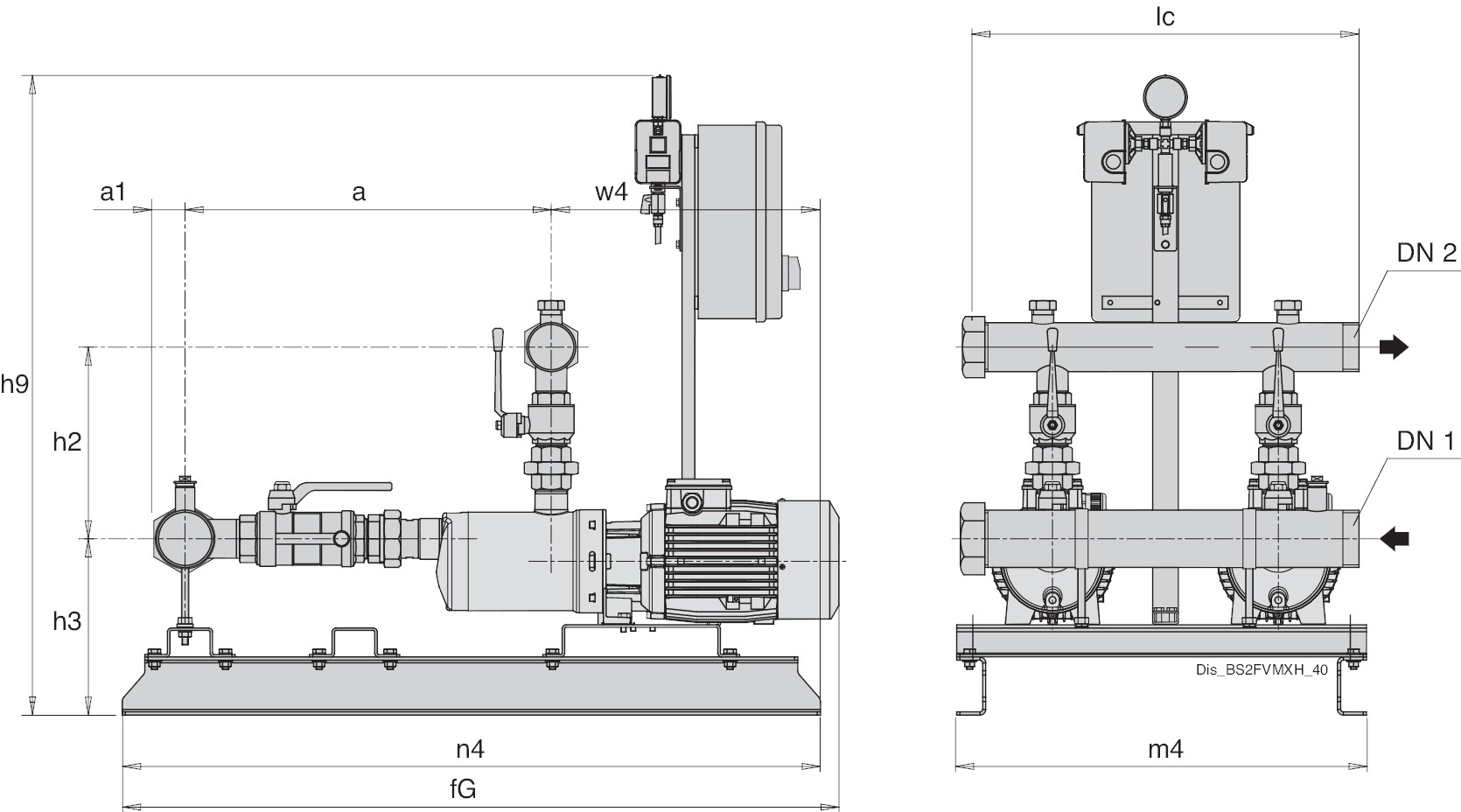 Pressione finale massima ammessa nel corpo pompa: 8 bar, 10 bar per MXH 20, 32, 48.