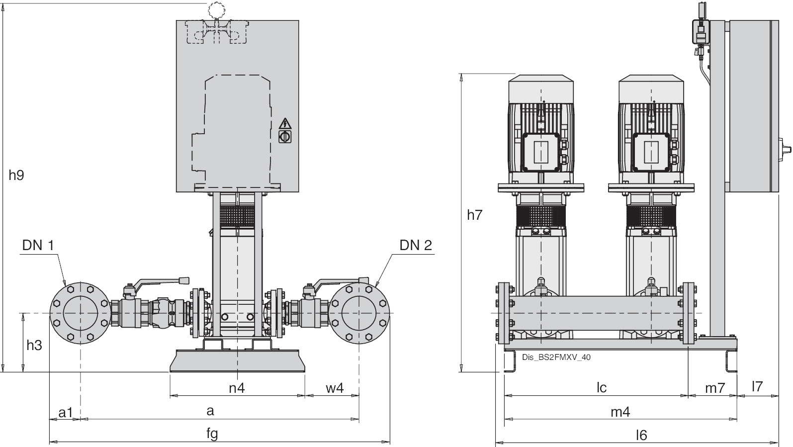 Pompe multistadio verticali con bocche di aspirazione e mandata dello stesso diametro e disposte sullo stesso asse (in-line).Bussole di guida resistenti alla corrosione e lubrificate dal liquido pompato.
