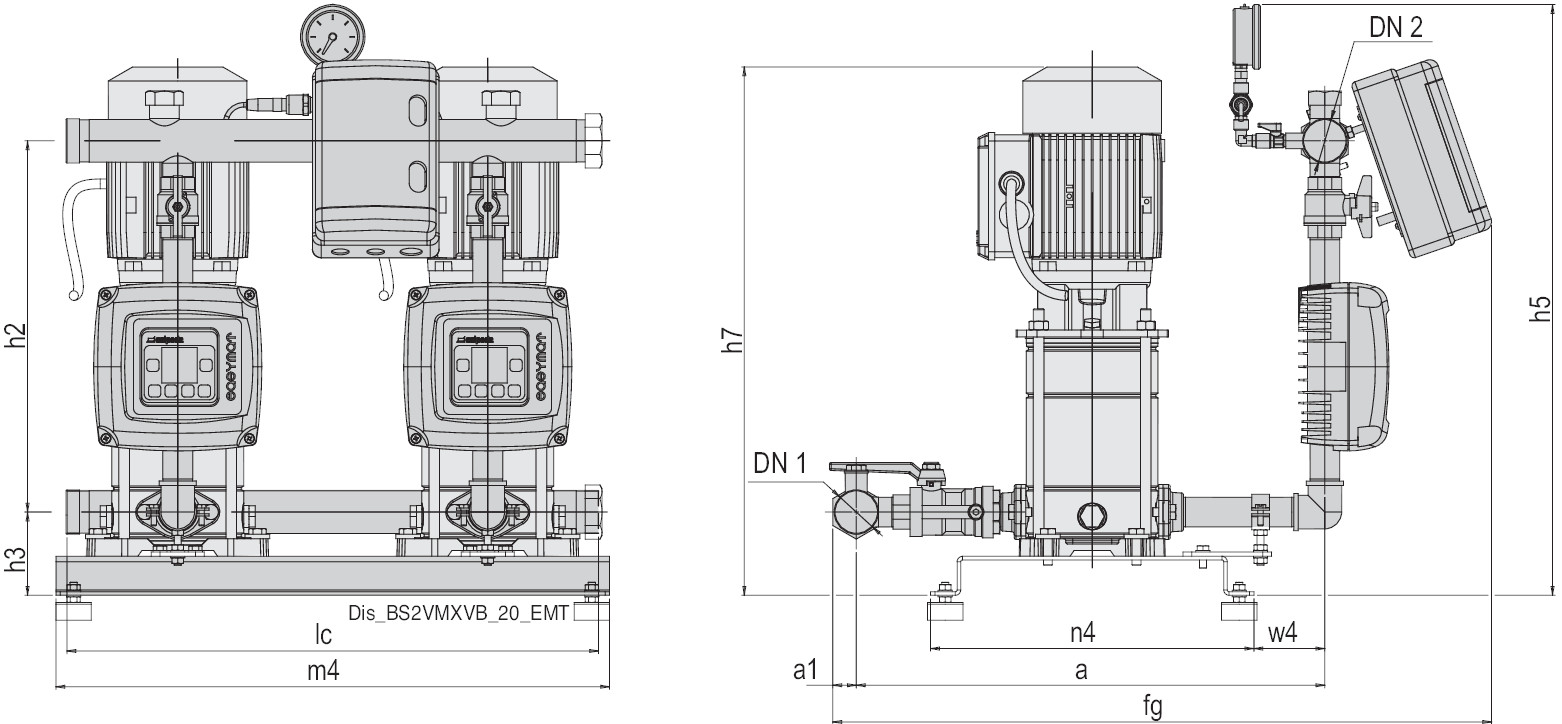 Pompe multistadio verticali monoblocco con bocche di aspirazione e mandata dello stesso diametro e disposte sullo stesso asse (in-line).Tutte le parti a contatto con il liquido, sono di acciaio inossidabile al cromo-nichel.