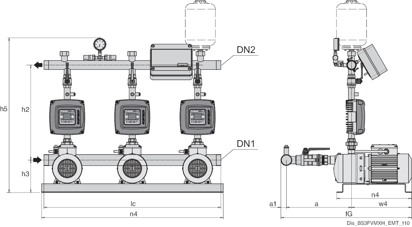 Pressione finale massima ammessa nel corpo pompa: 8 bar, 10 bar per MXH 20, 32, 48.